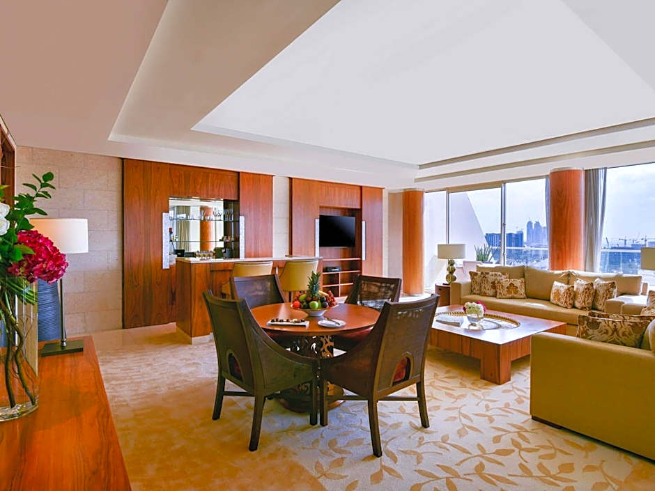 • Private furnished terrace with great views over Dubai • Free Wi-Fi • Living area • Dining area • Spa bath • Espresso machine and tea making facilities • Refrigerated private bar • Butler service • Free access to spa facilities (Sauna, steam room and whirlpool) • Luxurious Asprey toiletries, slippers, bathrobes and hairdryer.